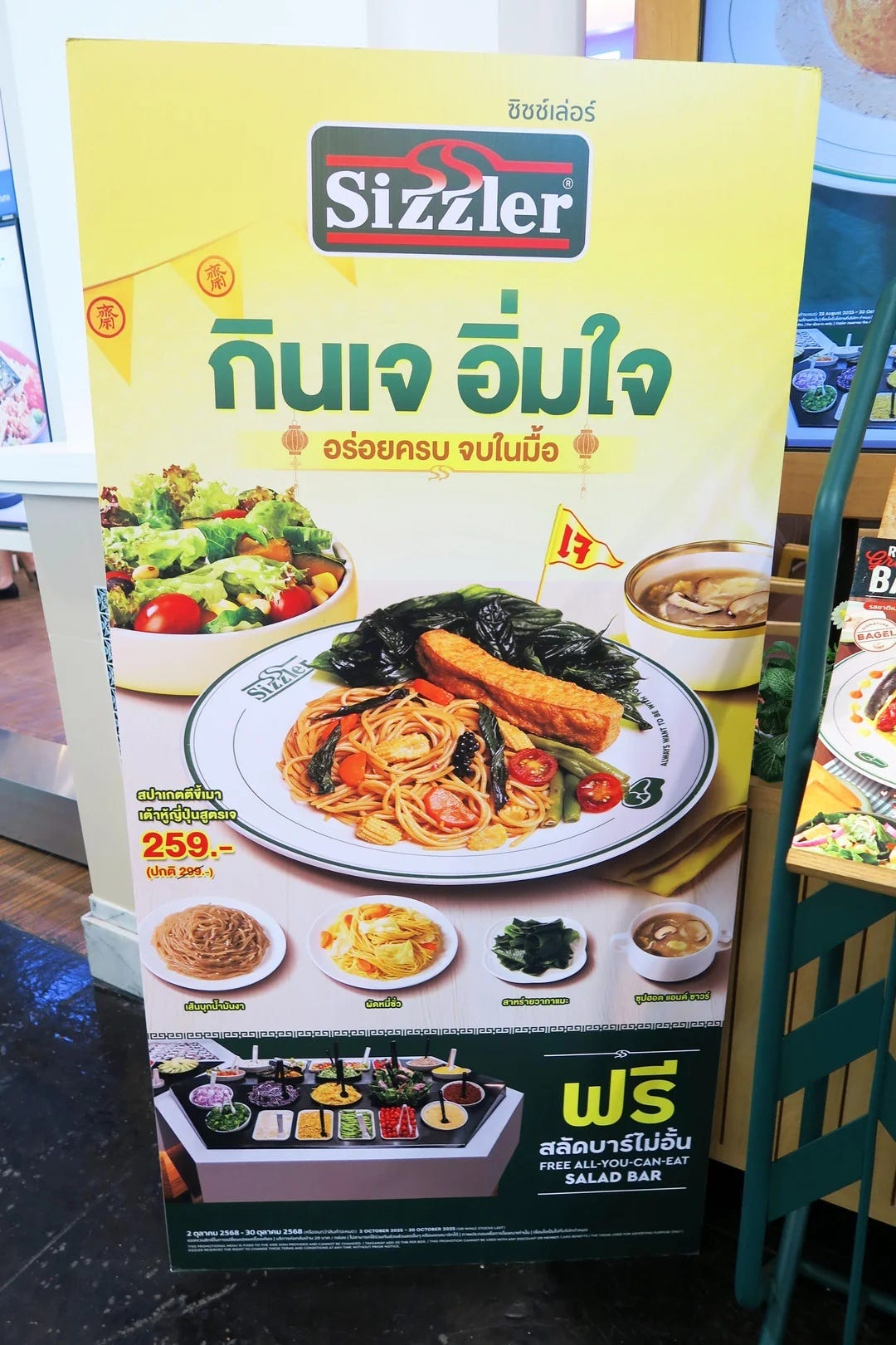 There were a lot of restaurants at the mall with large standees showcasing their vegan menus in front. I was very surprised to see Sizzler advertising a je menu. I don’t remember seeing that before. They had the best deal out of all the restaurants.