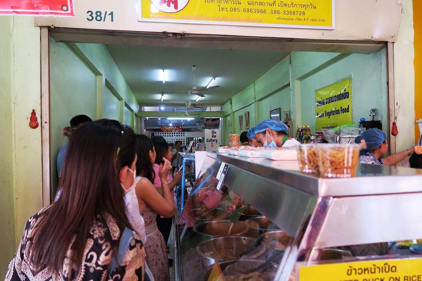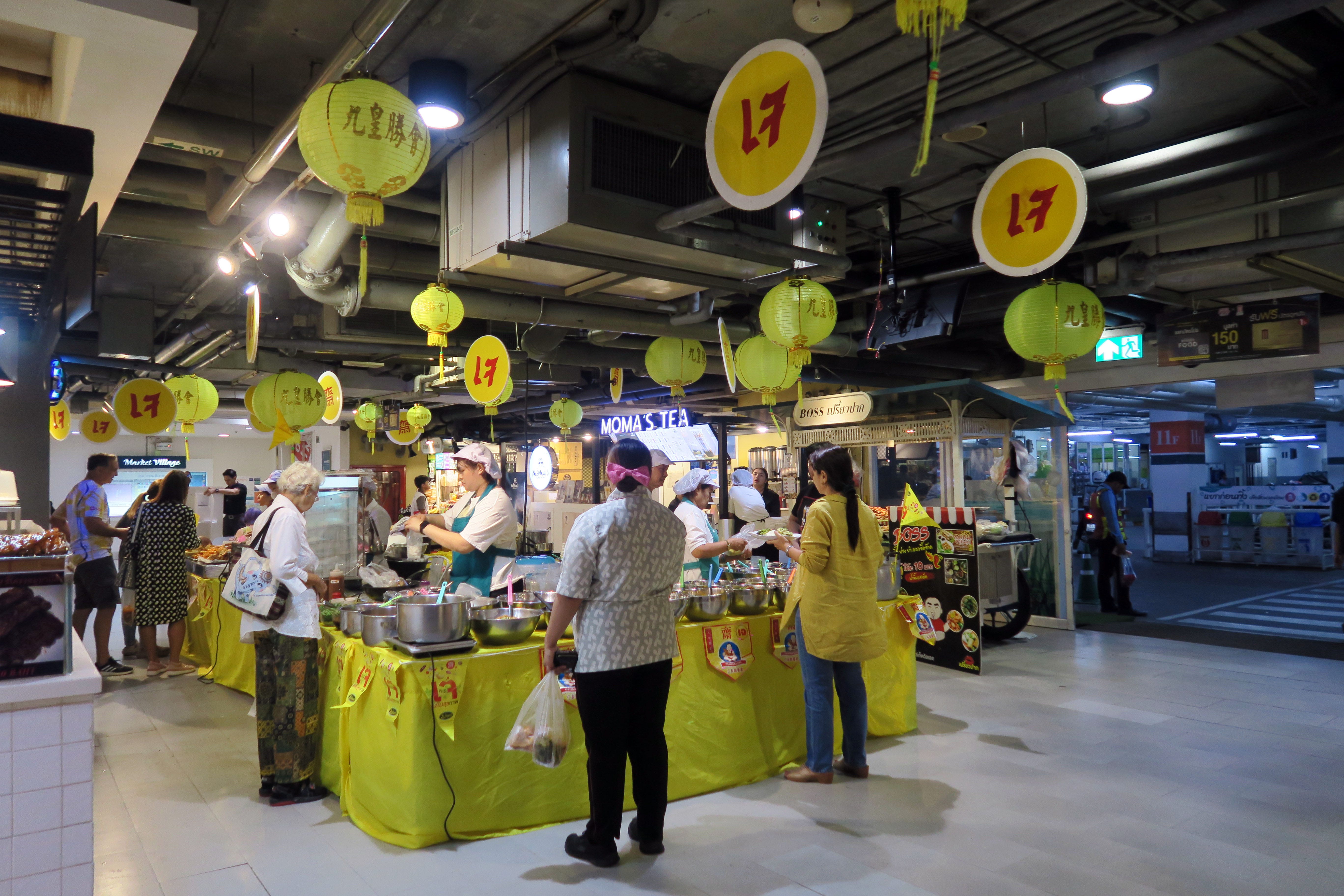I took a 15-baht songthaew to BluPort first since it’s farther away. Last year, the older Thai lady who cooks amazing je food every year wasn’t there, and the food was cold and mediocre.