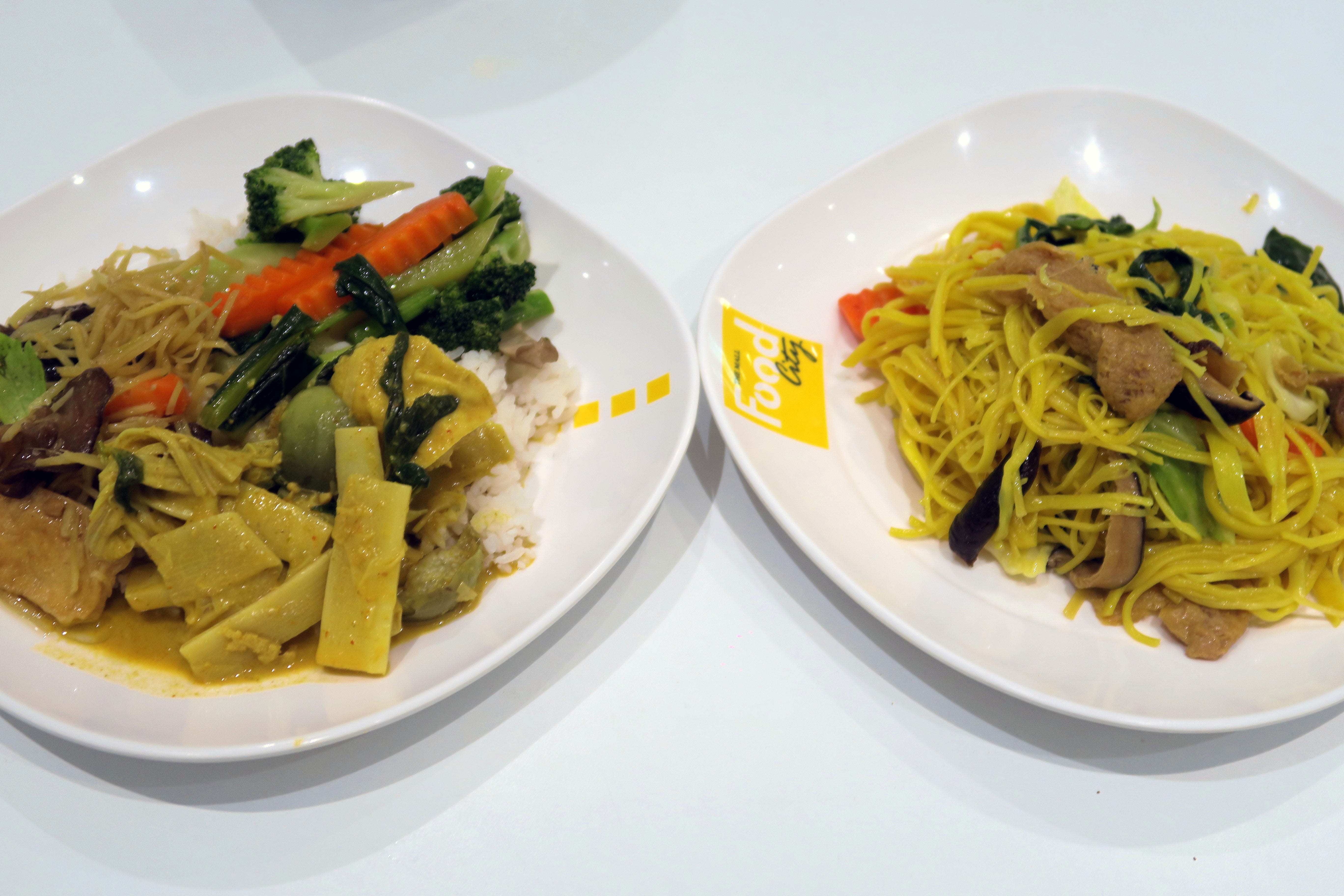 In the food court there’s a vegan section that is clearly marked with bright yellow and red flags and selling an assortment of cheap and delicious Thai food like yellow noodles, pink noodles, various curries, stir fries, sausages and more. All made with love by an older Thai woman who’s been running that vegan stall for many years.
